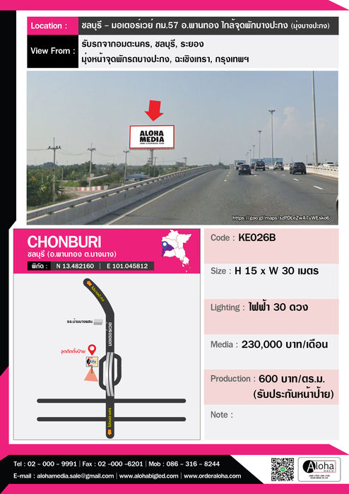 ชลบุรี - มอเตอร์เวย์ กม.57 - อ.พานทอง ถัดจากจุดพักรถบางปะกง (มุ่งบางปะกง)